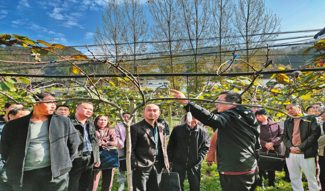 活動組織全縣6個獼猴桃基地經營主體及40多名農戶參與,省農村科技開發中心專家王亞國圍繞獼猴桃秋冬季施肥、修剪、防凍及病蟲害防治等關鍵管理技術開展專題培訓,提升了全縣獼猴桃從業人員的科學管理能力。(本報記者 張 英 攝)。